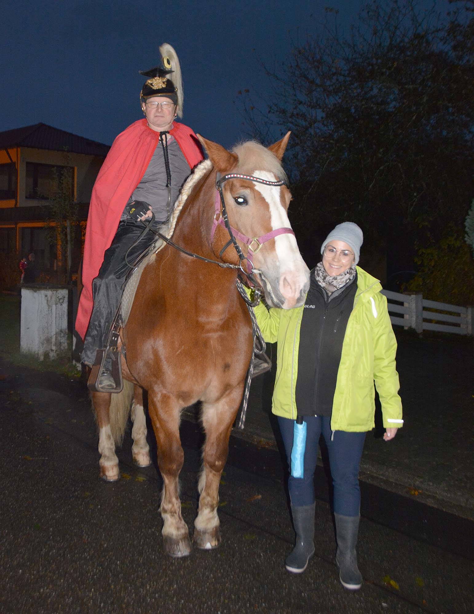 Hier wie dort erklangen die beliebten Martinslieder und die Jungmusiker unter der Leitung von Dirigent Stefan Polap begleiteten die Gesänge. Als Martinsreiter war am Montag in Unterharmersbach Hubert Hansmann im Einsatz. Gestern Abend führte Christian Fritz hoch zu Roß und in Begleitung von Ramona Kienzle den Umzug an.