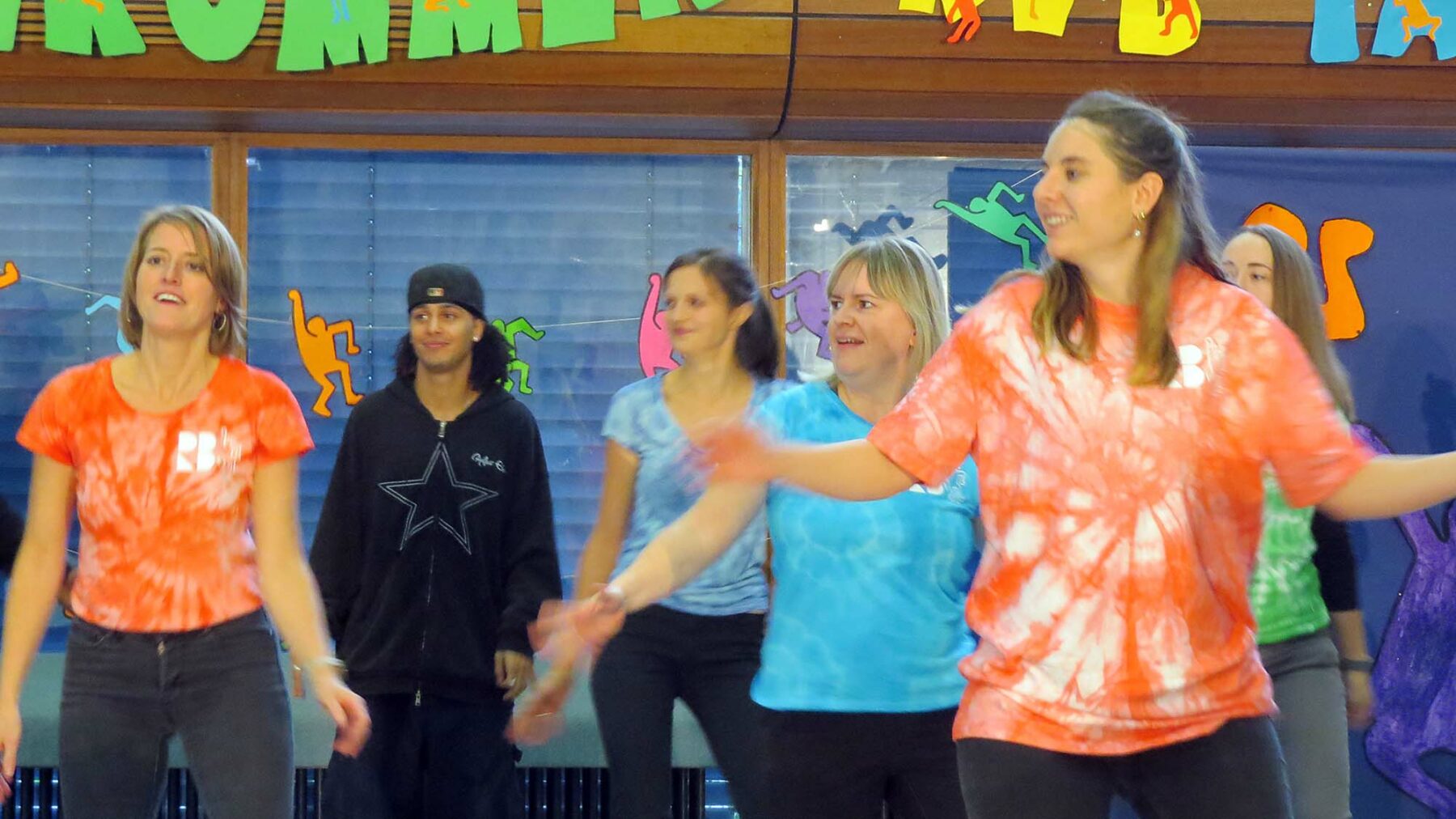 Foto: Gisela Albrecht„Are you ready?“ (Seid ihr bereit?) fragten die Tanz-Coaches die Kinder vor ihrem jeweiligen Auftritt. Ein lautstarkes „Yeah“ schallte stets zurück. Dieser Beginn kennzeichnet gut die Stimmung bei den Tanzvorführungen: begeisternd, laut (trommeln und mitklatschen) und fröhlich. Die Choreografie gaben die Tanz-Coaches vor, wobei der Schwerpunkt mehr auf dem Rhythmus als auf der Ausführung lag. Bei den fröhlichen und immer strahlenden Vortänzern sprang der Tanzfunke sofort über und die Kinder waren mit Eifer bei der Sache.