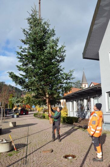 Vier große Tannenbäume stammen aus der Christbaumkultur von Betriebshofmitarbeiter Siegfried Lehmann. Der Betriebshof der Stadt Zell war diese Woche gemeinsam mit der Waldservice Ortenau und den Kranwagen der Firma Schnurr im Tannenbaum-Einsatz. Am Stadteingang, auf dem Kanzleiplatz, vor dem Rundofen sowie in Unterentersbach und Unterharmersbach werden die Plätze weihnachtlich geschmückt.