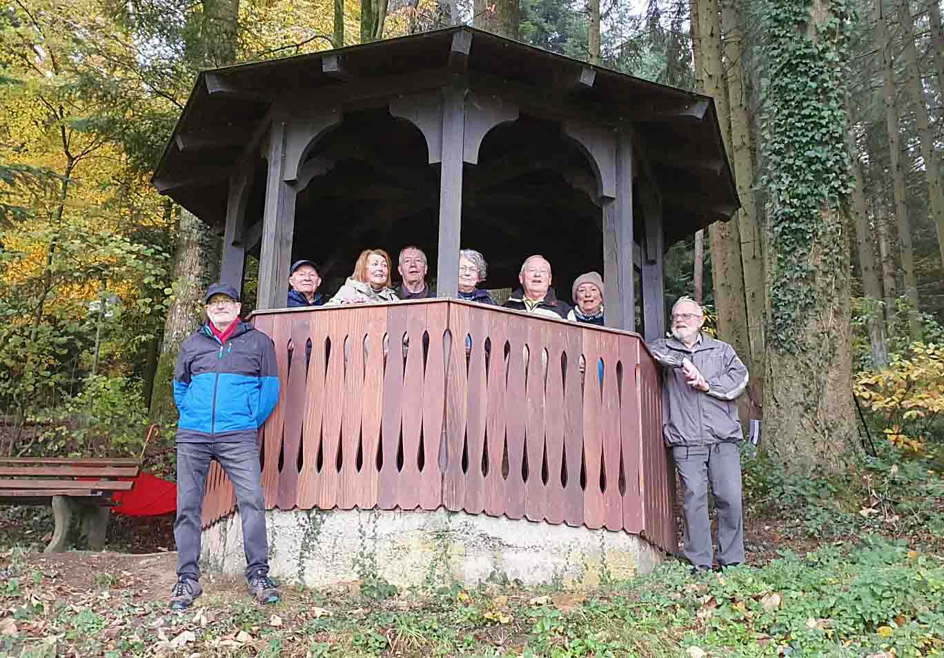 Ein Teil der Wandergruppe des Zeller Schwarzwaldvereins bei der Abschlusswanderung 2023 am Pavillon bei der Friedenskapelle. Foto: Manfred Brosamer