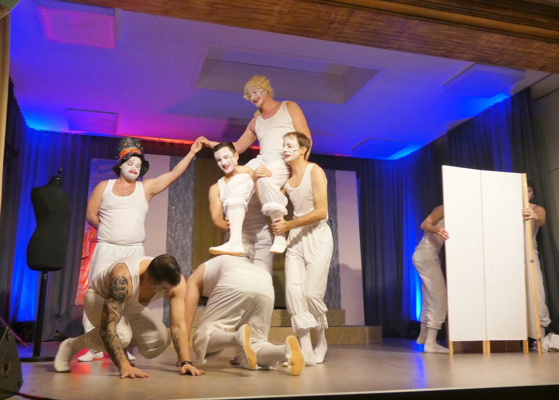 Foto: Inka Kleinke-BialyRegelrecht kochen tat er schließlich, der große Saal im katholischen Pfarrheim St. Symphorian, als das offizielle Programm kurz nach Mitternacht zu Ende ging. Denn da standen acht nun nur noch mit schwarzer Unterhose, weißen Kniestrümpfen und Ballettschläppchen bekleidete sowie glücklich lachende Männer auf der Bühne.