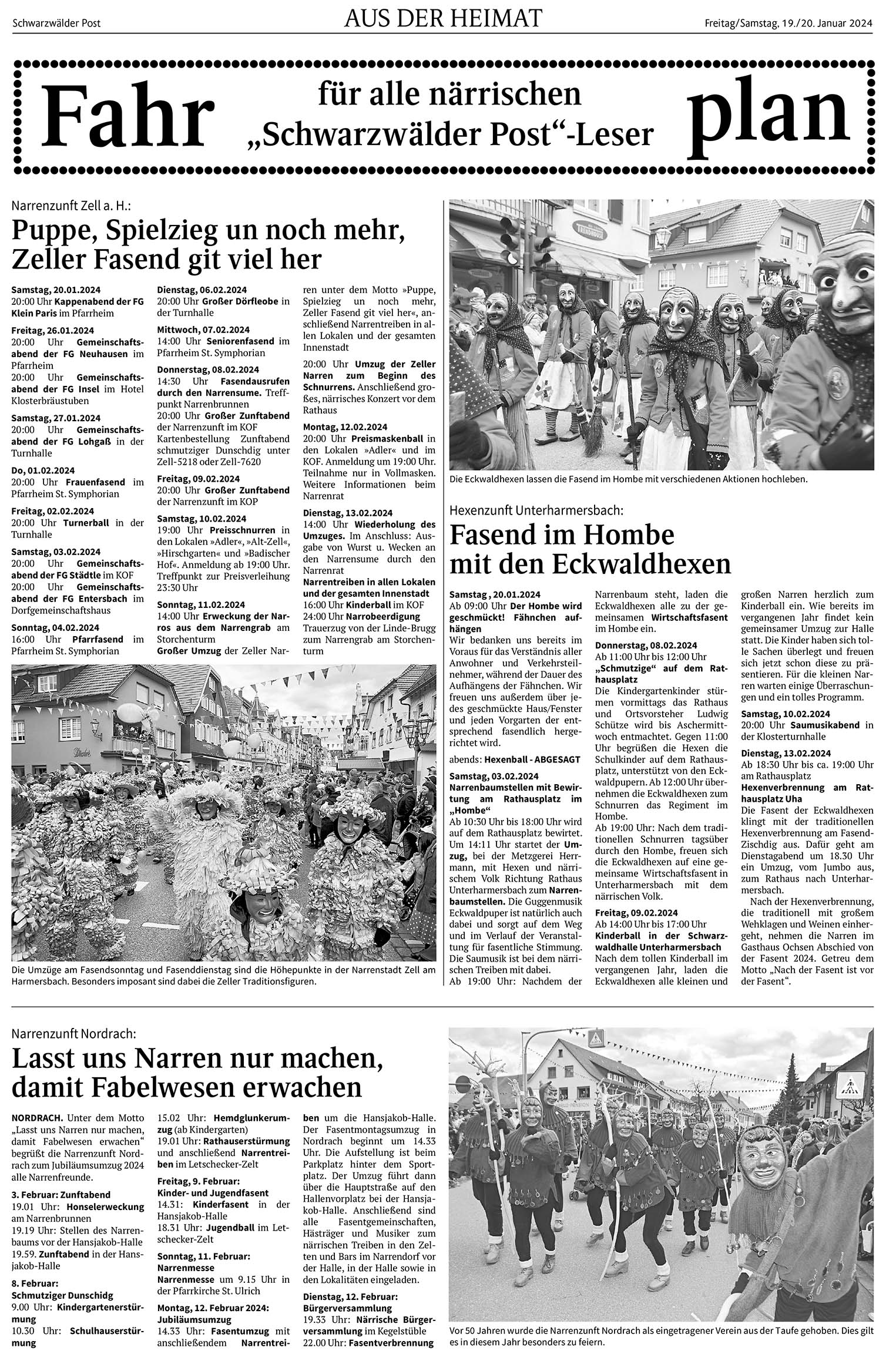 Fahrplan für alle närrischen „Schwarzwälder Post“-Leser