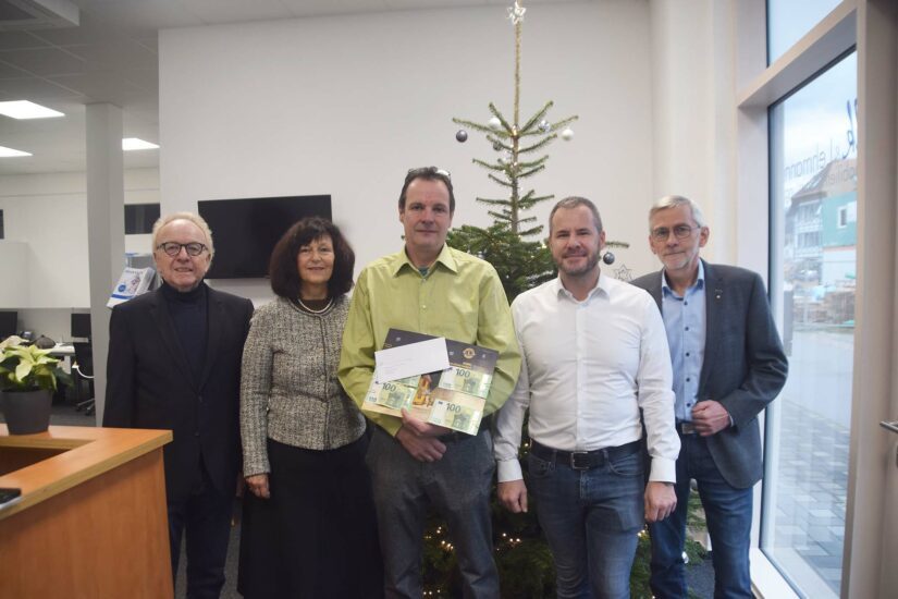 Tobias Falk, selbst Mitglied des Lions Clubs, betonte, dass es ihm wichtig sei, die Aktivitäten des Lions Clubs auch finanziell zu unterstützen und übergab Dieter Zimmermann den Geldbetrag. Jutta Gnädig und Christian Bruder, die derzeitigen Präsidenten des Clubs, dankten Tobias Falk für seine großzügige Spende und gra tulierten ebenfalls dem Gewinner.