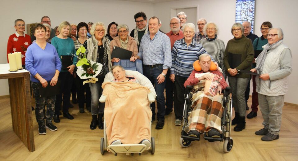 Der Kirchenchor intonierte, vertretungsweise unter der Leitung von Thomas Dreher, schöne Weihnachtsmelodien und den musikalischen Wunsch „Viel Glück und viel Segen, auf all Deinen Wegen…“. Neben den Jubilaren erfreuten sich auch weitere Heimbewohner an den Liedvorträgen.