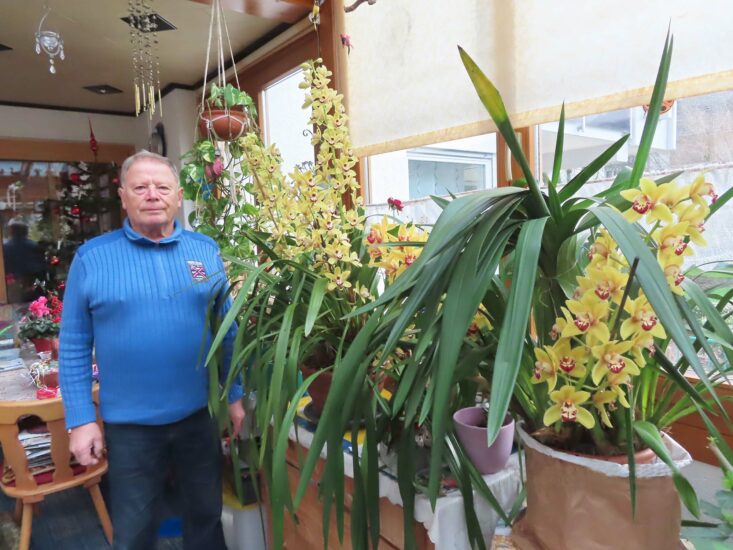 Seit 30 Jahren pflegt er die Pflanzen. Bis Ende Februar erfreuen die Rispenorchideen die Familie mit ihrer üppigen Blütenpracht.