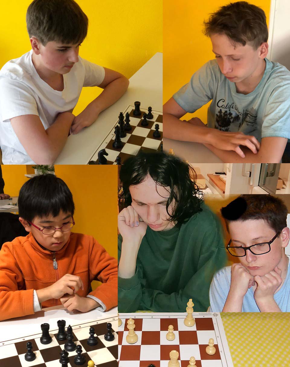 Alle fünf Jugendliche gewannen ihre Partie. Oben von links nach rechts: Maxim Klassen und Lukas Keller. Unten von links nach rechts Ho In Lee, Phillipp Eble und Bastian Franze. Foto: Peter Baumann