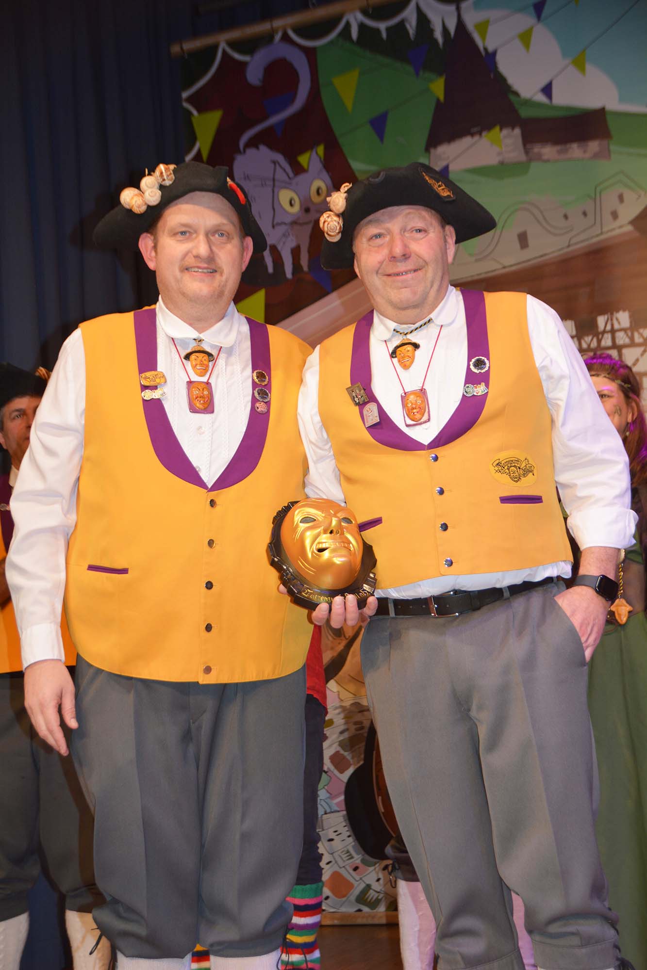 Mit einer ganzen Reihe von Geschenken wurde Clemens Halter für eine viertel Jahrhundert Zeller Fasend gedankt. Jeder der Narrenräte drückte ihn kräftig, es gab ein 10-Mann-Vesperbrett und ein Zeller Job-Kärtle. Die „Goldene Maske“ der Narrenzunft Zell wird im Hause Halter sicherlich einen Ehrenplatz erhalten.