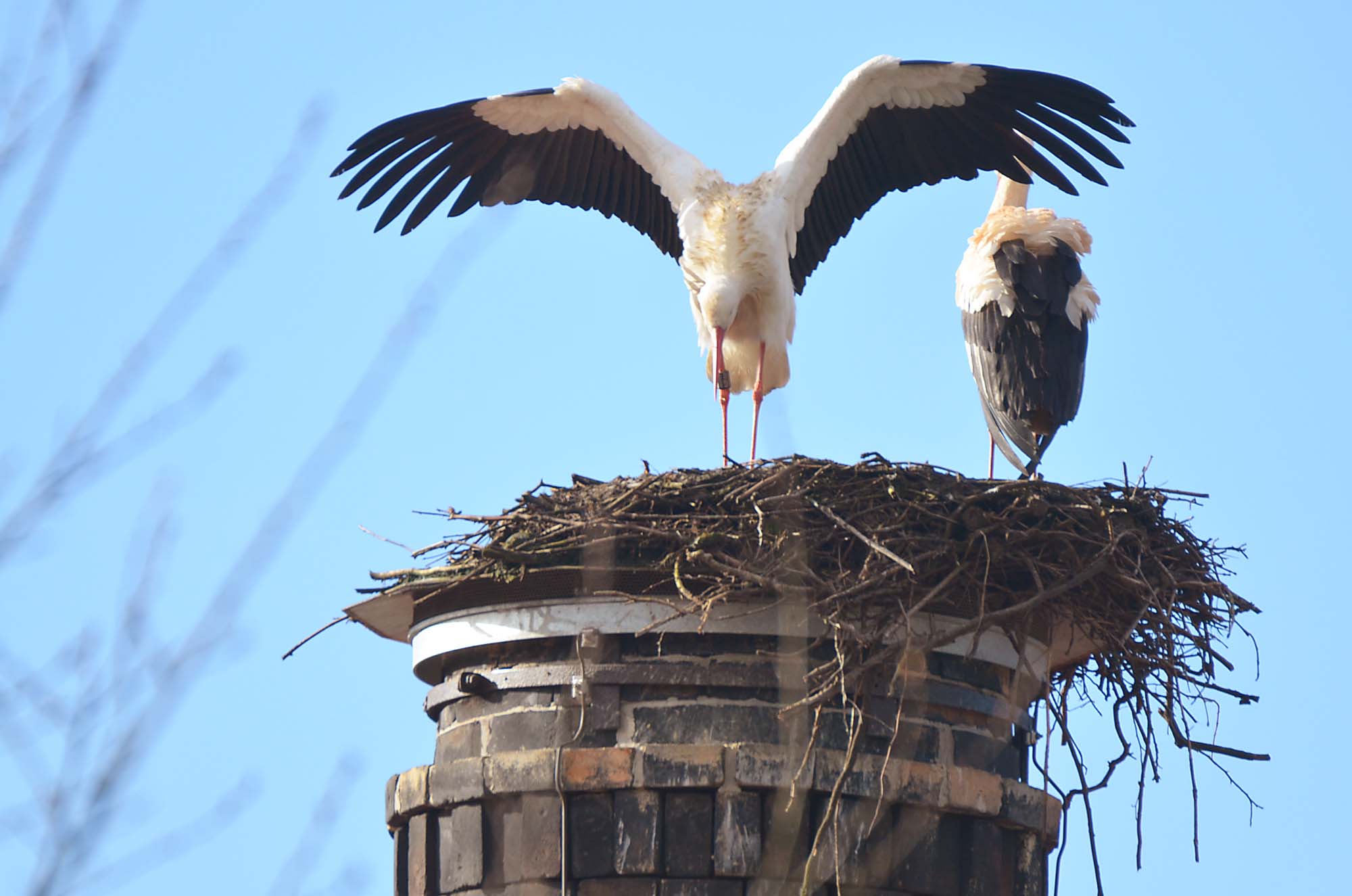 Auf zwei Horsten wird noch auf den Partner gewartet. Die beiden Störche, die letztes Jahr auf der Nordseite des Storchenturms ein neues Nest gebaut haben, konnten noch nicht gesichtet werden.