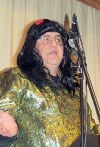 Der Pfarrer von auswärts kommt im Sauseschritt (aber zu spät), da kommt sie nicht mehr mit – ja, ja die schweren Fäll, die kommen nach Zell. Wie das mit dem Weihrauch geht – dafür hat sie einen Spickzettel aus dem Internet. Das nächste Mal nimmt sie Wunderkerzen mit – dann weiß sie wenigstens, wie es geht. Ihren Vortrag beendet sie mit einem Lied von den „Höhnern“, dass der Saal gerne mitsang.