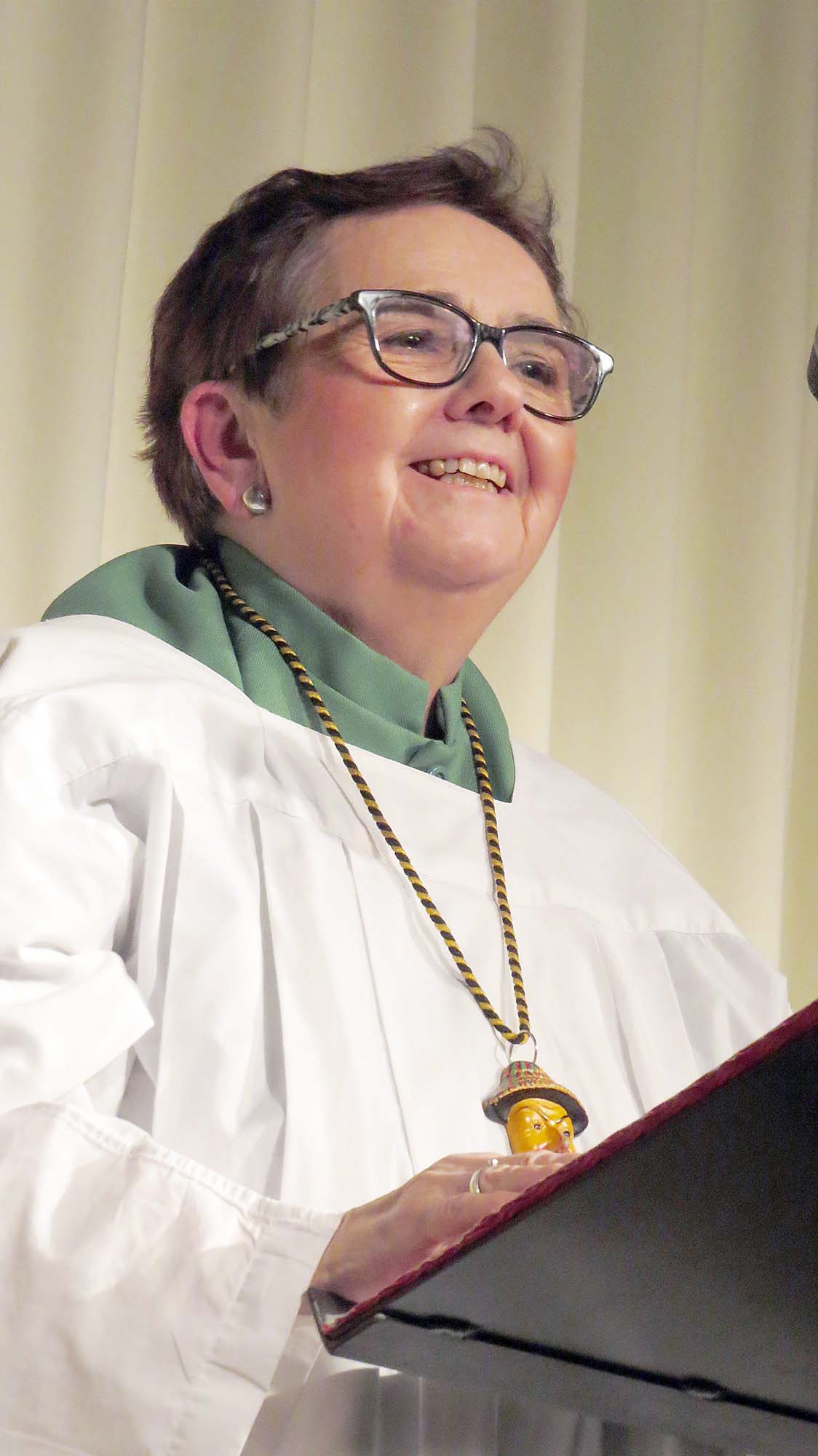 Brigitte Metzler kam im Ministrantengewand auf die Mühe und schilderte sehr amüsant ihre Erfahrungen als Aushilfsmessnerin im Kloster. „In der Kapell Hilfsmessner machen und noch ministrieren – muss einem das im Alter noch passieren?“ Hätte der Herrgott sie doch größer geschaffen, dann käme sie auch an die oberen Schrankfächer der Sakristei ran. Und dann noch das große Malheur – der einzige Schlüssel vom Tabernakel passt nicht mehr.