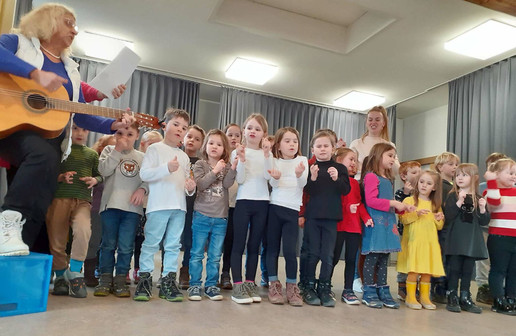 Mit dem Lied „Ein kleiner Käfer geht spazieren“ des Komponisten, Texter und Sängers von Kinderliedern Detlev Jöcker begeisterten die Kinder das Publikum.