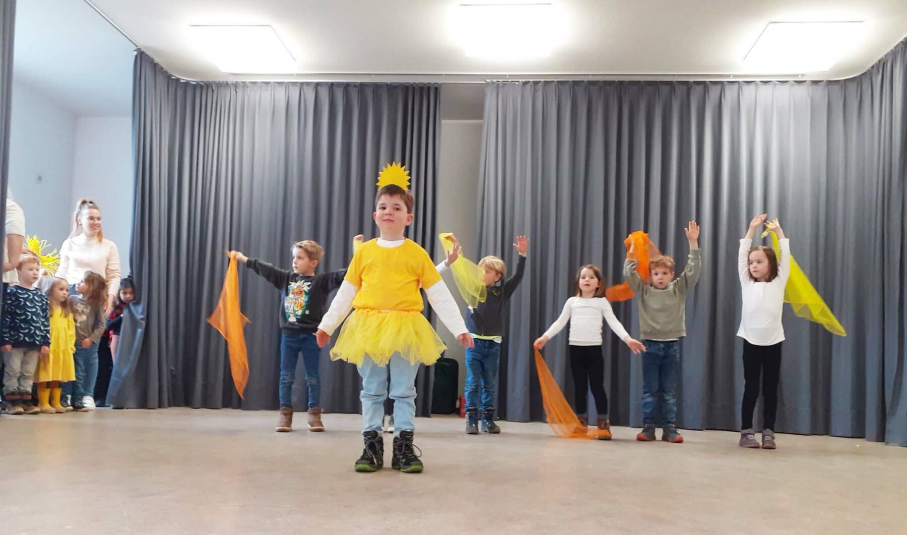 Nach der Begrüßung mit dem Lied „Hallo“ folgte das erfrischende und rhythmusbetonte Frühlingslied „Ich lieb den Frühling“. Prompt kam Bewegung in den Saal. Die Kindergruppe lud alle zum Fingerschnipsen ein. Gemeinsam trugen die Kleinen das Gedicht „Es ist Frühlingszeit“ vor.