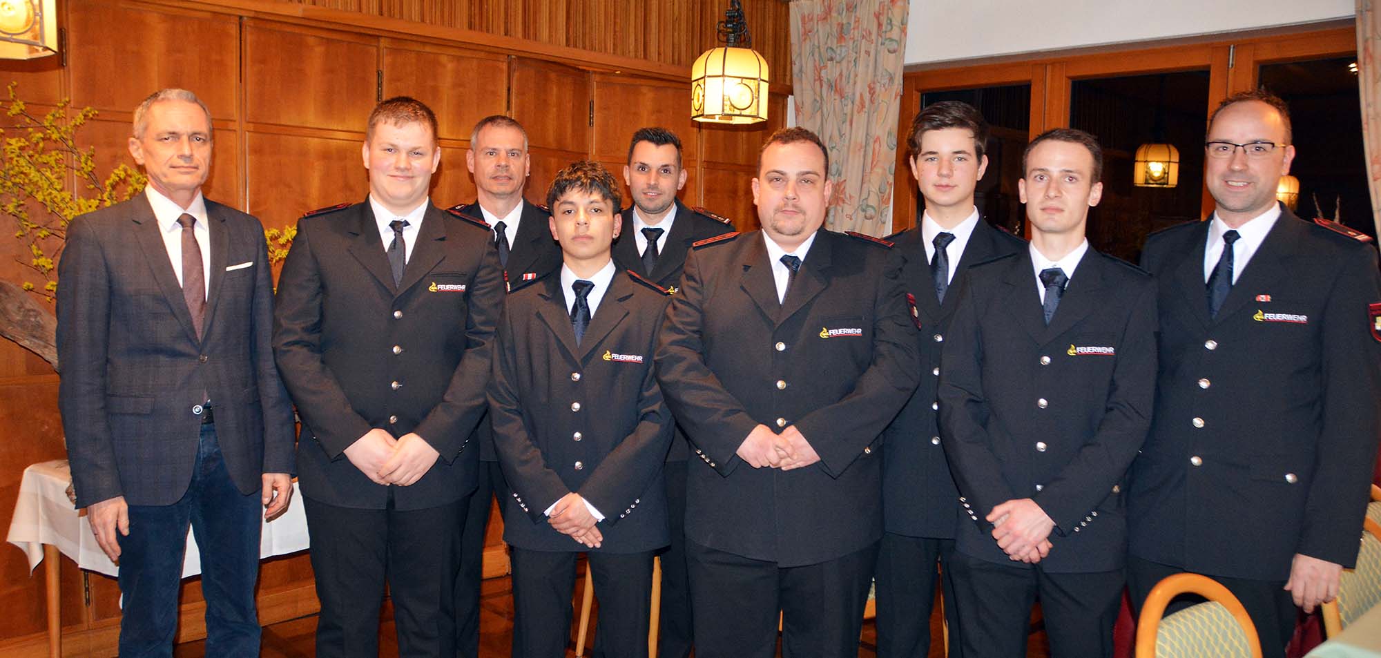 Fünf Nachwuchskräfte konnten zur Feuerwehrfrau bzw. zum Feuerwehrmann befördert werden. Sie haben zuvor erfolgreich die Grundausbildung absolviert. Es sind dies Carina Stengel, Lukas Nieke, Julius Erdrich, Lukas Petrahn und Amaru Matt.