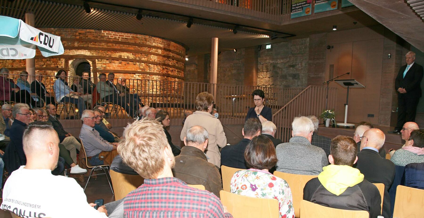 Rund 100 Personen waren der Einladung der CDU zur Begegnung mit der Ministerin für Justiz und Migration gefolgt. Nach einem ausführlichen Vortrag bestand Gelegenheit zur Diskussion, wovon reger Gebrauch gemacht wurde. Bürgermeister Günter Pfundstein bat die Ministerin, sich in das Goldene Buch der Stadt einzutragen.