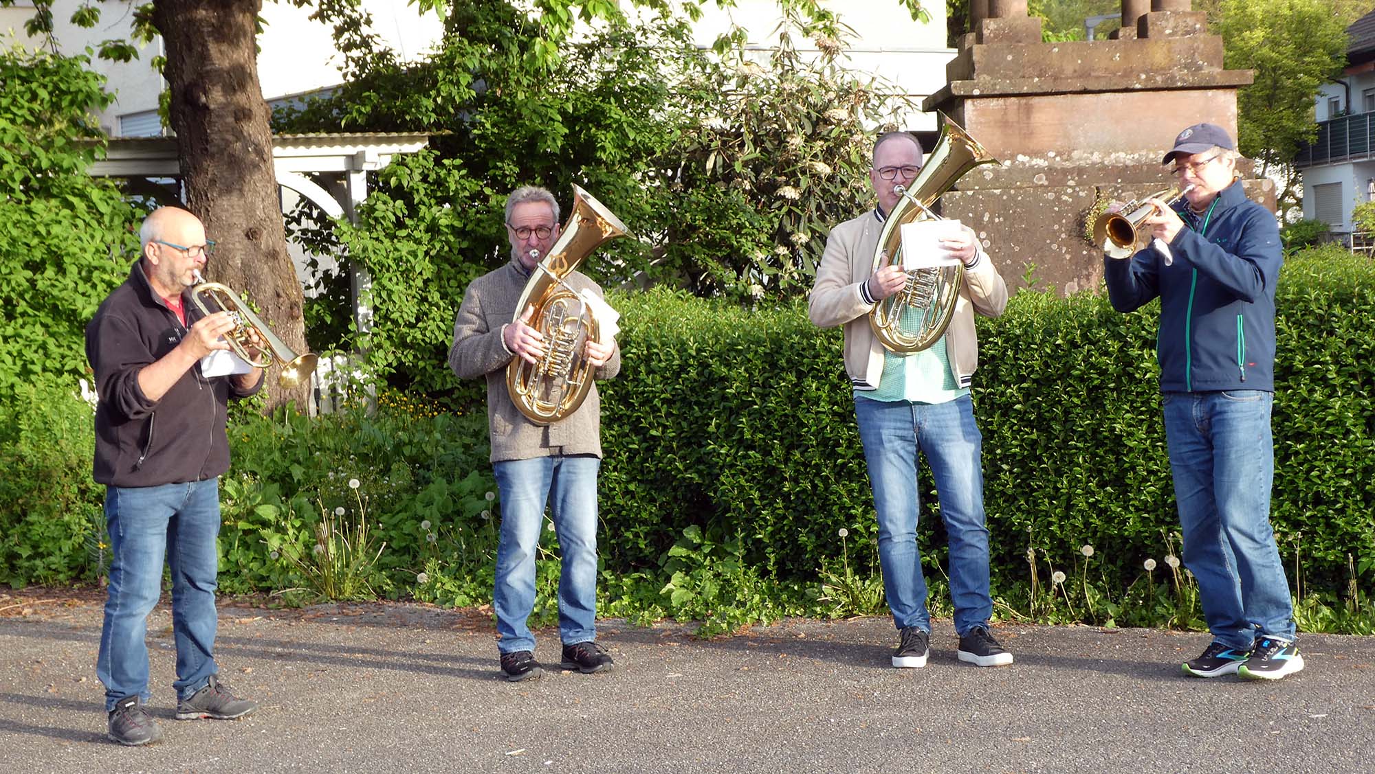 Der 1. Mai ist gekommen und mit ihm auch die „Mai-Musikanten“ (von links) Achim Willmann, Herbert Fix, Roland Marx und Robert Maier.
