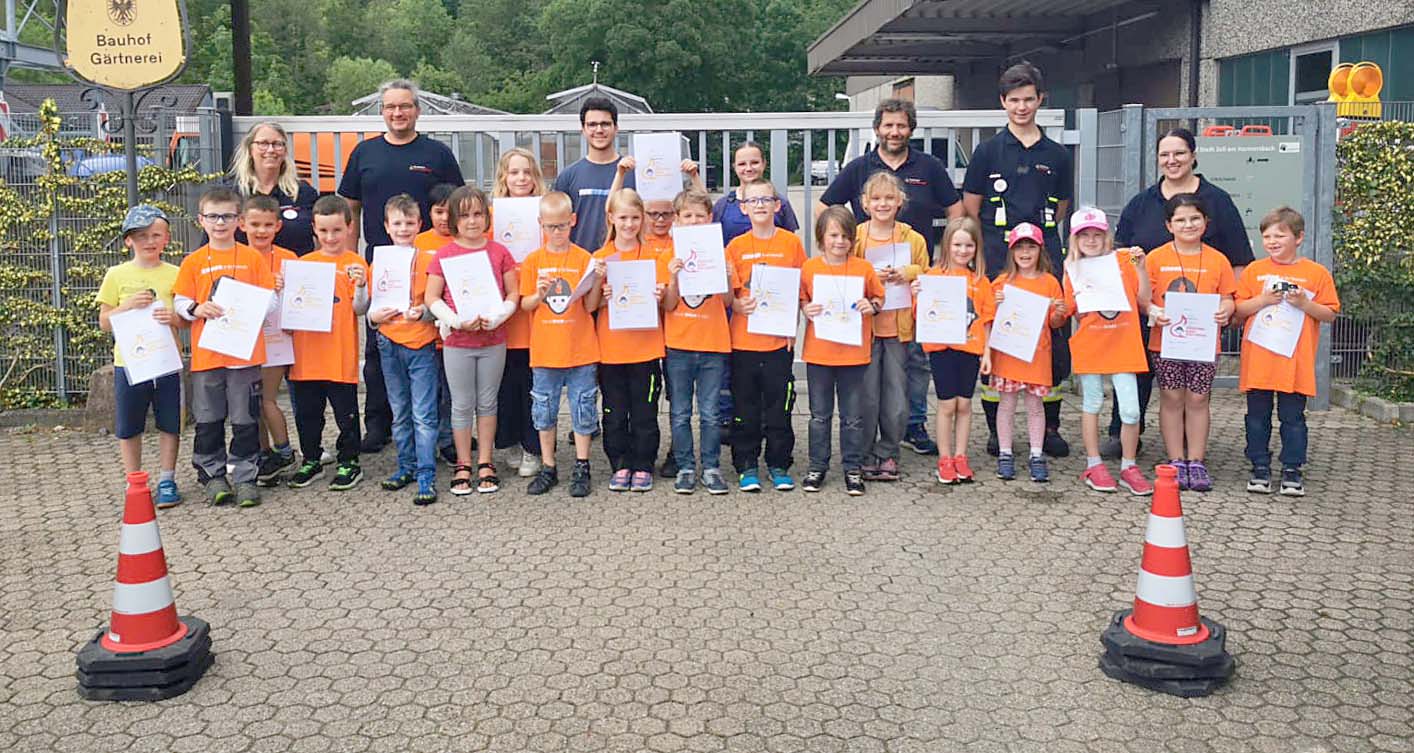 Unter den wachsamen Augen ihrer Betreuer meisterten die Kinder die gestellten Aufgaben und erhielten ihr erstes offizielles Abzeichen aus den Reihen der Feuerwehr.