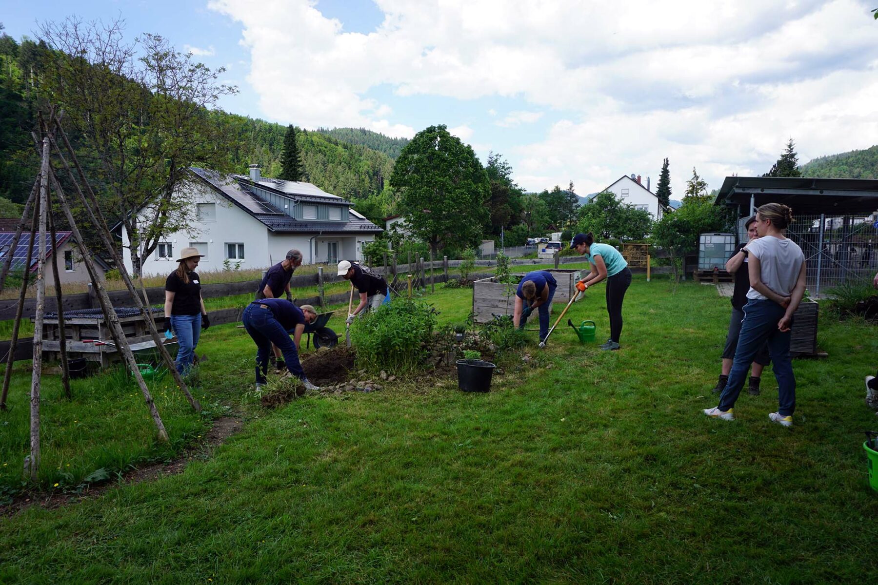 Der 14. Mai war kein gewöhnlicher Tag am Bildungszentrum „Ritter von Buss“: Während die Abschlussschüler über den Deutschprüfungen schwitzten, ackerten 16 Lehrerinnen und Lehrer aus dem gesamten Regierungsbezirk Freiburg in und um die Beete des Schulgartens.