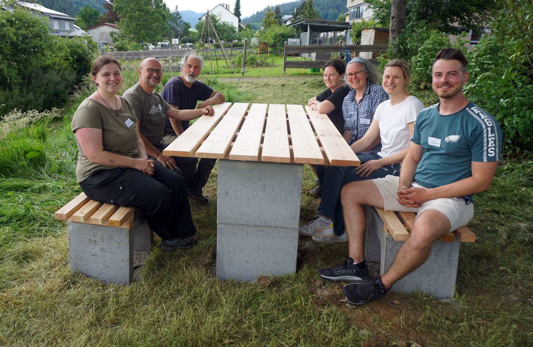 Unter der Leitung von Anja Grün, Dipl.-Ing. Landschaftsarchitektur aus Freudenstadt, baute ein Teil der Teilnehmer ein „Grünes Klassenzimmer“. Aus einfachen Materialien entstand eine Sitzgruppe für den Unterricht im Freien.