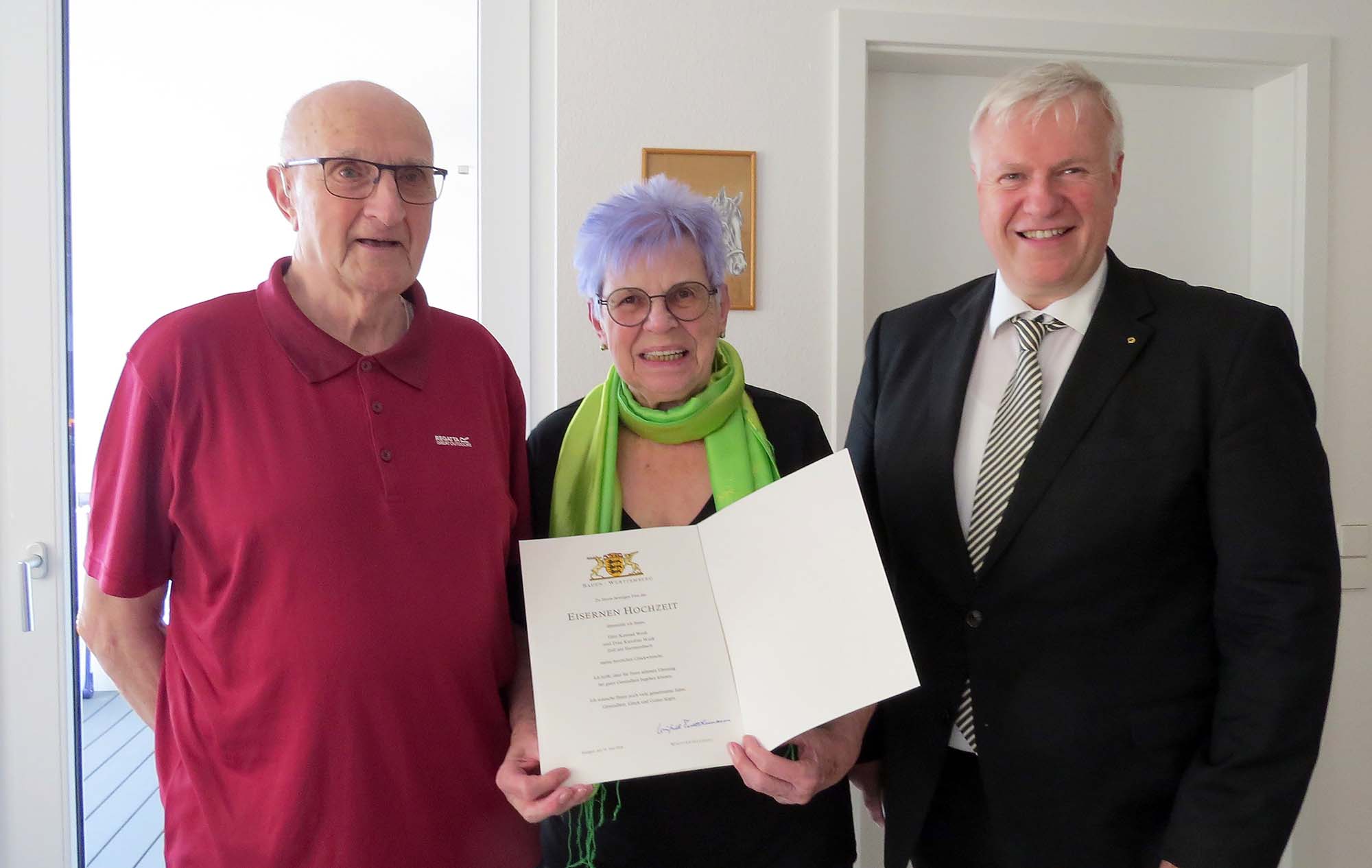 Am Mittwochnachmittag gratulierte Bürgermeisterstellvertreter Hannes Grafmüller und überbrachte Glückwünsche und Geschenkgutschein der Stadt Zell und das Glückwunschschreiben des Landes Baden-Württemberg, unterschrieben von Ministerpräsident Winfried Kretschmann. Grafmüller las beide Urkunden vor und sagte: „Dies ist ein besonderes Ereignis. Wir sind stolz auf unsere älteren Mitbürger.“