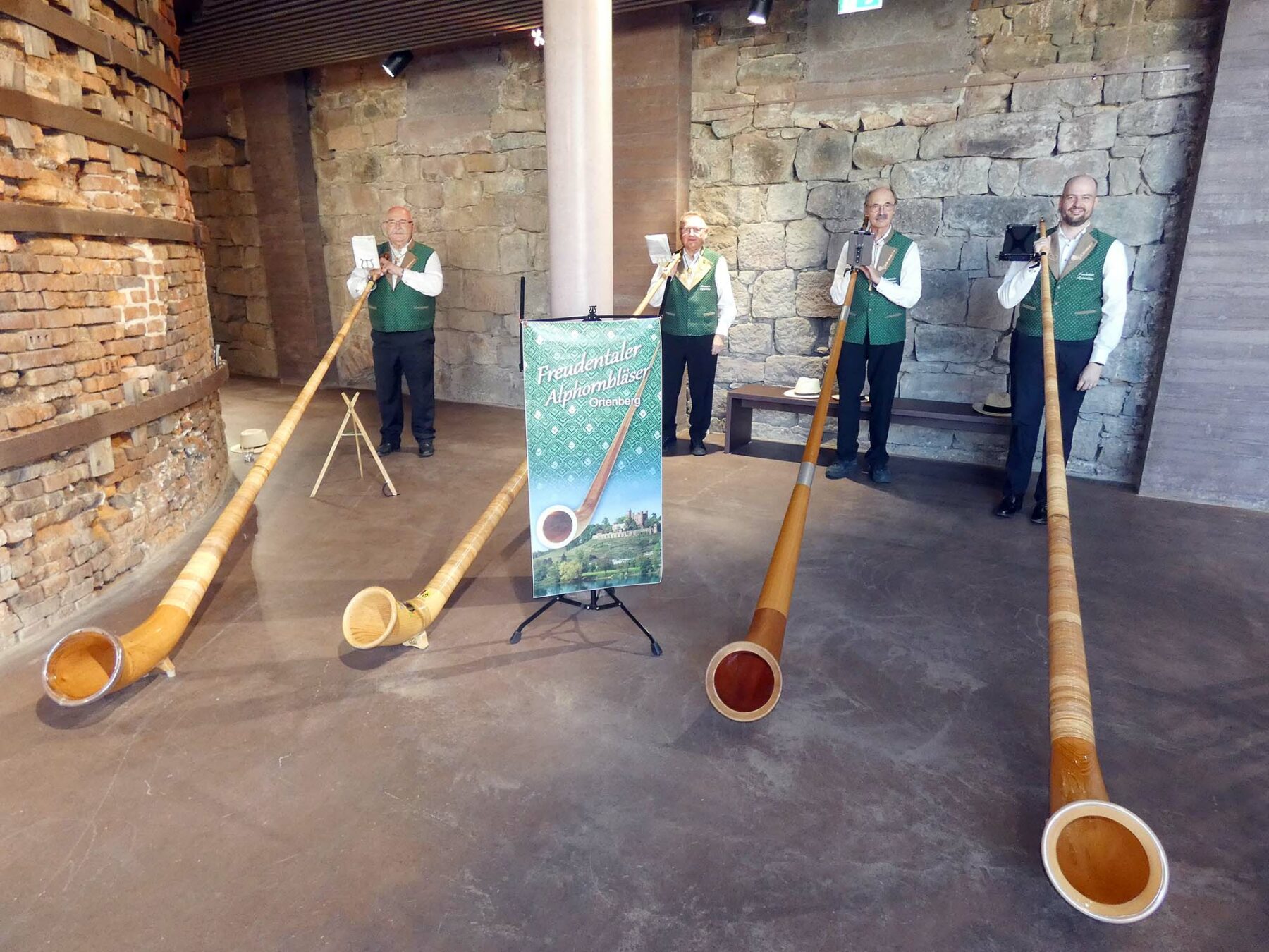 Begeistert und berührt: Das waren die Zuhörer der Freudentaler Alphornbläser ob der so besonderen Akustik im neugestalteten Rundofengebäude.