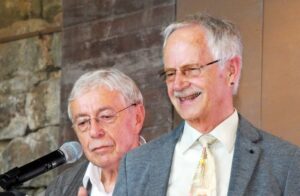 Bereitwillig: Gerne kam Johann B. Schreiber (rechts) der Bitte seines Laudators Bertram Sandfuchs nach, bestimmte Aspekte seiner Arbeitsweise zu erklären.