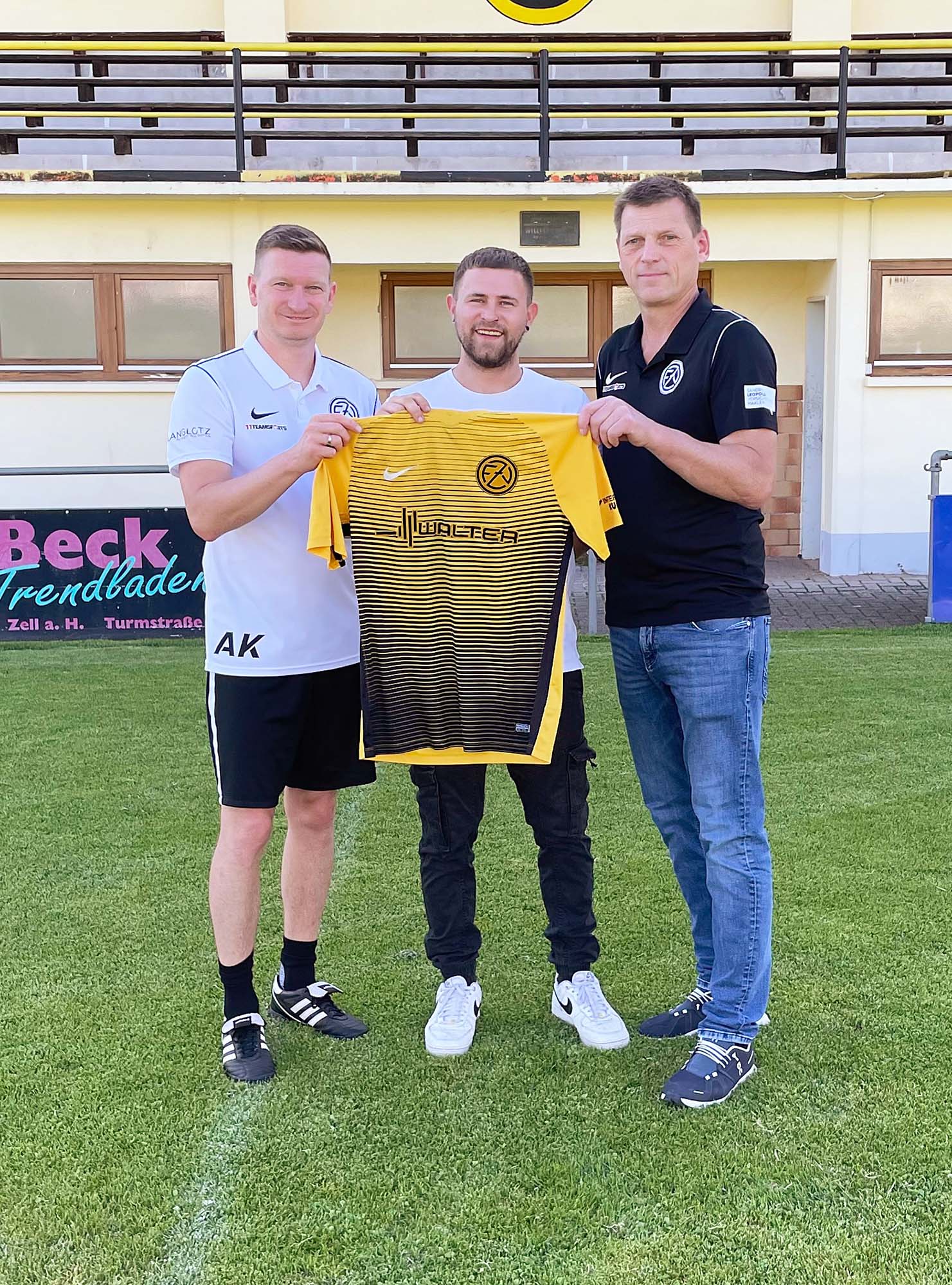 ZFV-Verstärkung für die nächste Saison wechselt aus Ettenheim nach Zell. Von links nach rechts: Alexander Keil (Trainer), Neuzugang Felix Schmidt und Vorstand-Sport Torsten Pristl. Foto: Verein