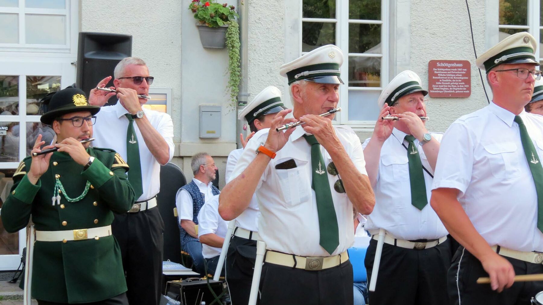 Zum Biwak am Abend packten alle Musiker ihre Instrumente aus und ohne große Proben klappte das Zusammenspiel beider Spielmannszüge beim Einmarsch reibungslos.