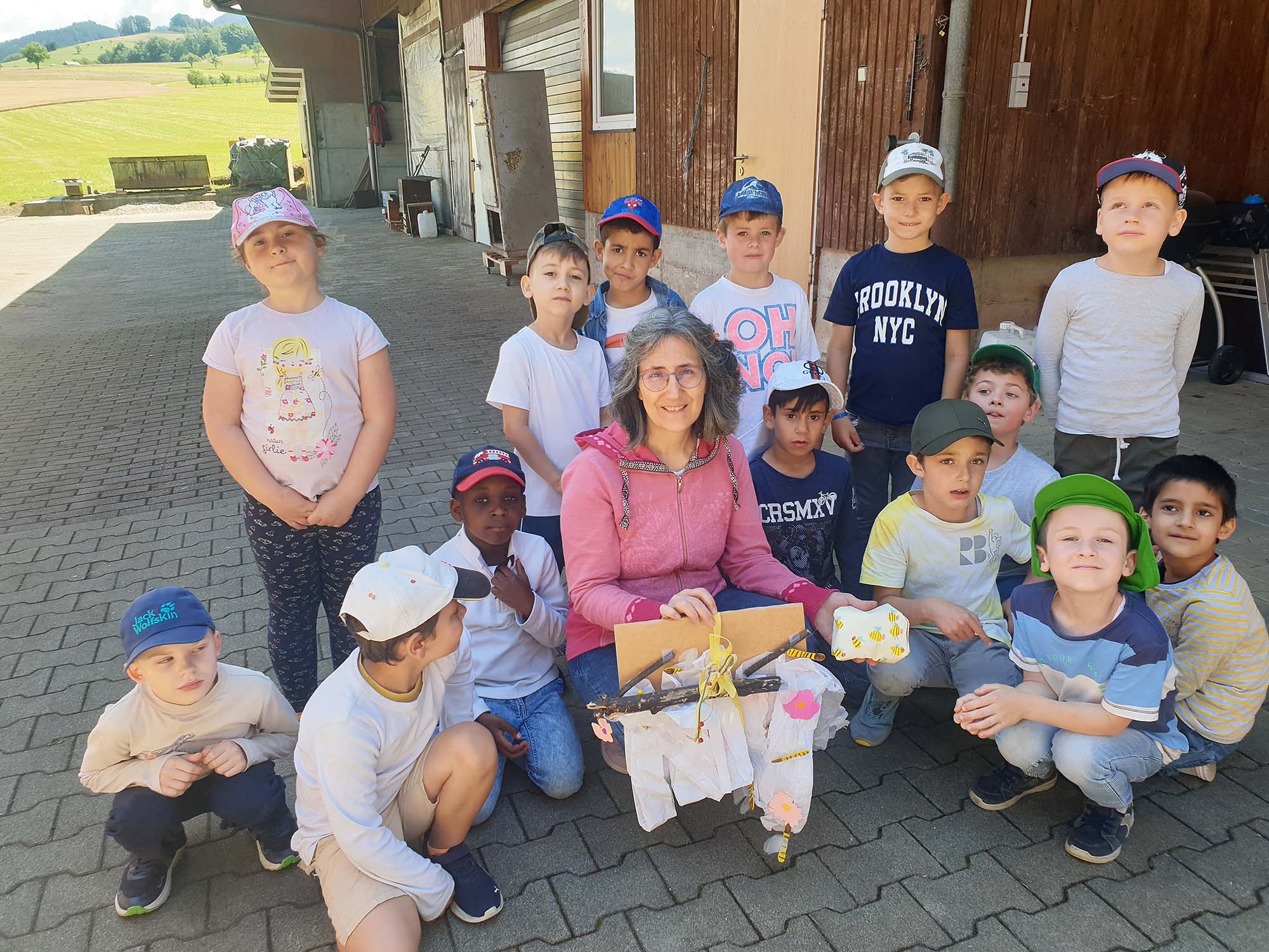 Einen lehrreichen Vormittag verbrachten die Schüler der Grundschulförderklasse zusammen mit ihrer Lehrerin Patricia Lehmann und Frau Willmann (Begleitmama) bei Simone Waidele in der gleichnamigen Berufsimkerei. Bei angenehmen frühsommerlichen Temperaturen und strahlendem Sonnenschein informierte Simone Waidele anhand von viel Anschauungsmaterial über den aufwendigen und den, nicht nur für die Bienen, sehr arbeitsreichen und aufwendigen Prozess der Honiggewinnung. Die Kinder konnten hierbei immer wieder, ihr in der Schule erworbenes Wissen mit den Informationen der Expertin verknüpfen. Sie lernten viel über die Arbeitsbiene und den Bienenstock, in dem jeder seinen Platz und seine Aufgabe hat. Nach der gemeinsamen Stärkung mit Honigbrot und Apfelschorle im gemütlichen Honigstübchen, ging es hinaus auf die Wiese und zum Bienenstock. Schon von weitem war das fleißige Summen und Surren der Bienen zu hören. Bei genauem Beobachten konnte man deutlich die gut gefüllten „Pollenhöschen“ der emsig fliegenden Bienen sehen. Auf den einzelnen Waben waren die verschiedenen Stadien der Entwicklung vom Ei über die Made bis zur schlüpfenden Biene zu sehen. Mit dem Besuch in der Imkerei fand das Bienenprojekt einen krönenden Abschluss und die Kinder verknüpften erlerntes Wissen mit praktischen, naturnahen Erlebnissen. Mit einem kräftigen Applaus, vielen strahlenden, zufriedenen Gesichtern und einem selbst gebastelten Bienenmobile bedankten sich die Kinder für diesen gelungen, erlebnisreichen und interessanten Vormittag.