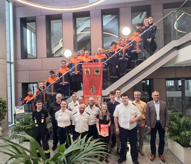 Im Beisein der Vertreter von Feuerwehr und Politik, wurden neben der offiziellen Partnerschaftsurkunde auch eine Fahne, sowie ein Wimpel als Zeichen der Partnerschaft ausgetauscht.