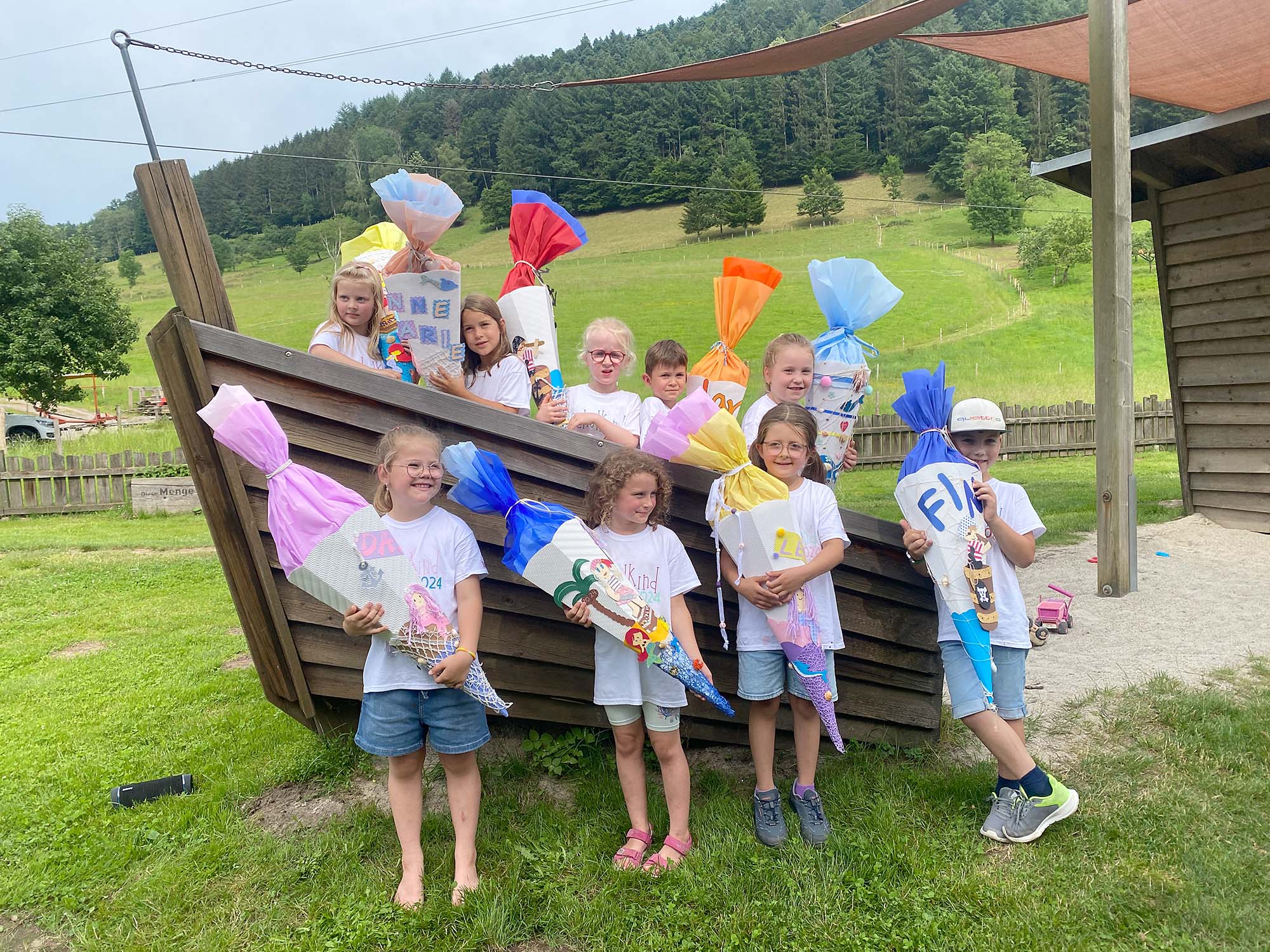 Zum Abschluss ihrer Kindergartenzeit durfte ein Piratenfest nicht fehlen. So trafen sich die Kinder mit ihren Erziehern/ innen in Nordrach und folgten den Hinweisen der Schatz suche. Auf dem Nordi-Spielplatz fanden sie dann den gesuchten Schatz. Von dort aus fuhren sie mit dem Planwagen zum Mühlenstüble.