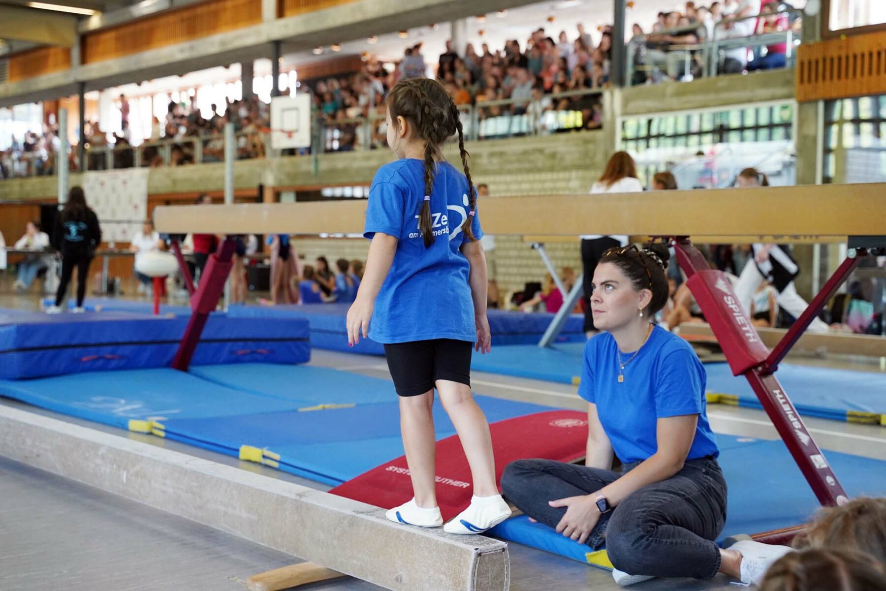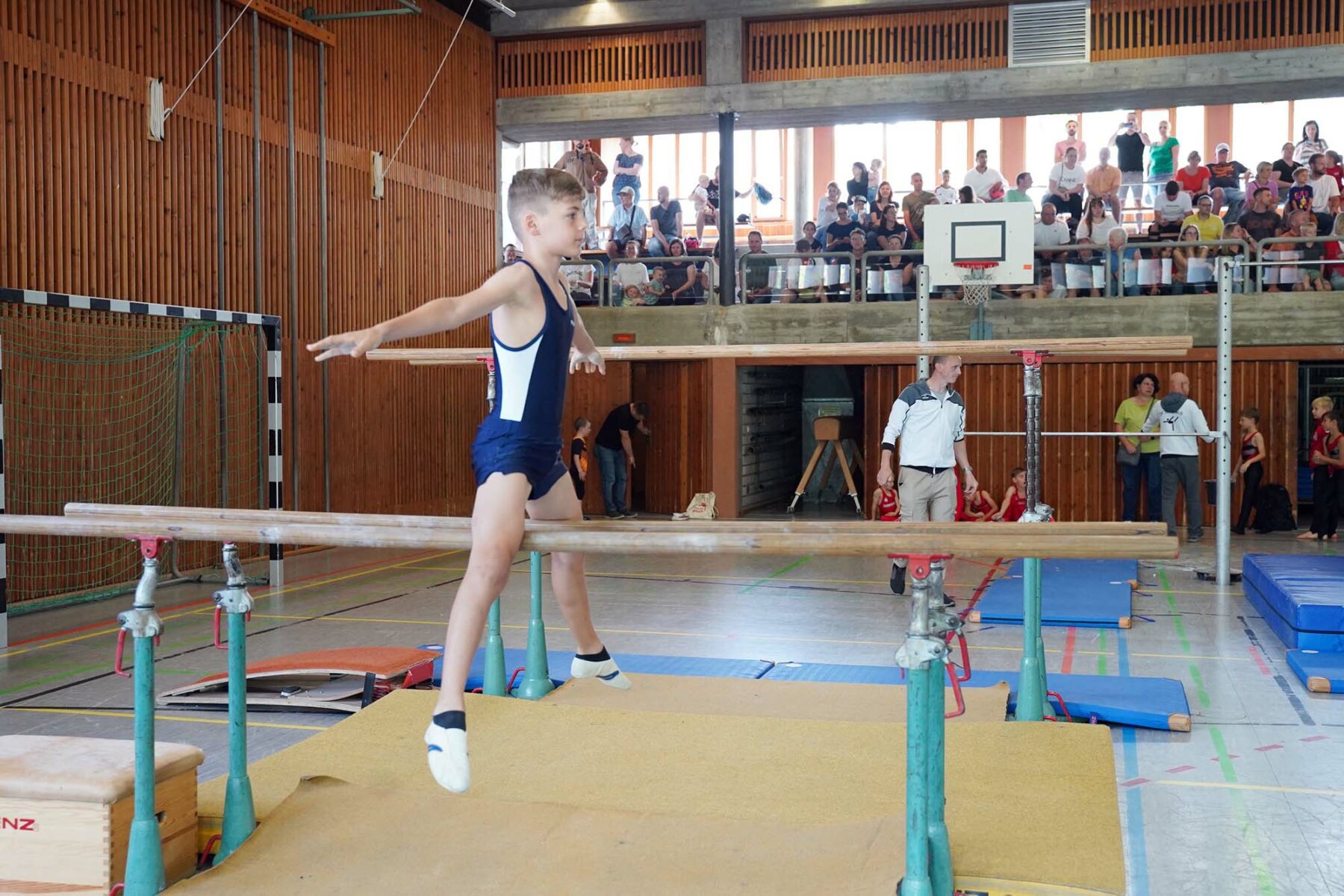 Was die Entscheidung für die kurzen Wege allerdings mit sich brachte: viele Geräte mussten angeliefert werden. Das Team „Geräte-Transport“ lieferte aus der Jahnturnhalle, der Schwarzwaldhalle und von verleihenden Vereinen: Sprungtische, Schwebebalken, Barren … Berge von Matten …
