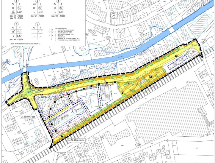 Die Nutzungszone Fünf betrifft die geplante Eigentumswohnlage. Daran schließt sich die Bestandsbebauung mit mehreren Wohngebäuden und dem Schlossereibetrieb an. Der Bebauungsplan sieht vor, dass zu dem Betriebsgelände eine neue Stichstraße entsteht.