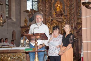 Am Ende des Gottesdienstes, den Wolfram Dreher an der Orgel musikalisch begleitetet hatte, bedankte sich Lektorin Gisela Boschert im Namen ihrer Kirchengemeinde bei allen, die zum Gelingen der Wallfahrt beigetragen haben und nannte stellvertretend die Konzelebranten und die Ministranten. „Wir werden neue Wege gemeinsam gehen, mit Gott als Wegweiser und von den Menschen, die uns begleiten und begegnen, Hilfe und Zuneigung erfahren“, nahm sie das Motiv der Wallfahrt nochmals auf.
