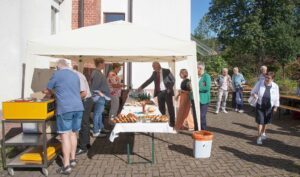 Im Namen der politischen Gemeinde Nordrach lud sie die Pilger zu einem kleinen Umtrunk und stärkenden Imbiss in den Klostergarten ein. Dies ist seit Jahren auch eine Erinner-ung an den weltlichen Teil des nunmehr 335 Jahre alten Versprechens, denn außer der Kerze wurde damals Getreide für die Armen gespendet.