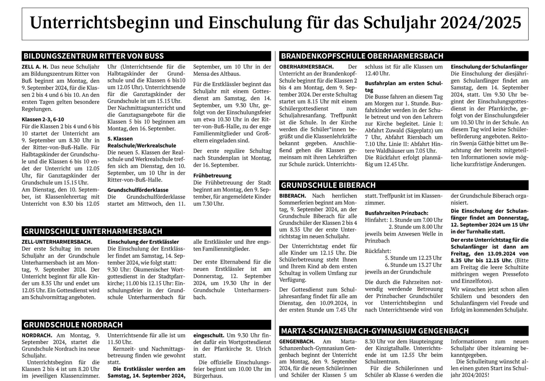 Bildungszentrum Ritter von Buß Zell am Harmersbach, Brandenkopf-Schule Oberharmersbach, Grundschule Biberach, Grundschule Nordrach, Grundschule Unterharmersbach