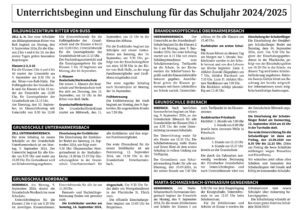 Unterrichtsbeginn und Einschulung für das Schuljahr 2024/2025
