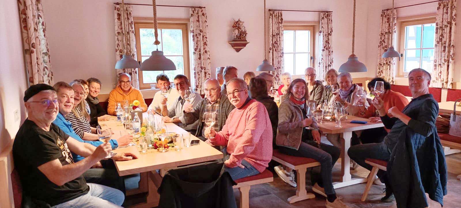 Nach einer kurzen Pause trafen sich alle wieder beim Ortenauhaus zu einer Weinprobe. Ein Sekt und drei Weine wurden probiert. Hierbei ging es sehr gesellig zu und es wurde viel erzählt und gelacht. Anschließend ging es mit dem Zug wieder zurück nach Biberach. Zu Fuß ging es dann nach Unterentersbach zum Abschluss ins Landhotel „Zum Pflug“.