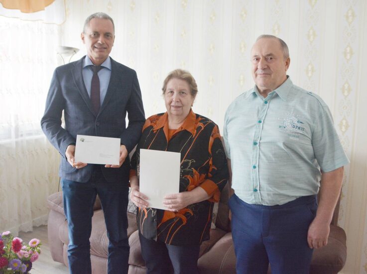 Bürgermeister Günter Pfundstein überbrachte Margarita und Alexander Jungmann die Glückwünsche der Stadt Zell zur goldenen Hochzeit. Neben den persönlichen Worten übergab er eine Zeller Gutscheinkarte, mit der sich das Jubelpaar einen Wunsch erfüllen kann. Auch Ministerpräsident Winfried Kretschmann übermittelte den Eheleuten Jungmann die besten Wünsche.