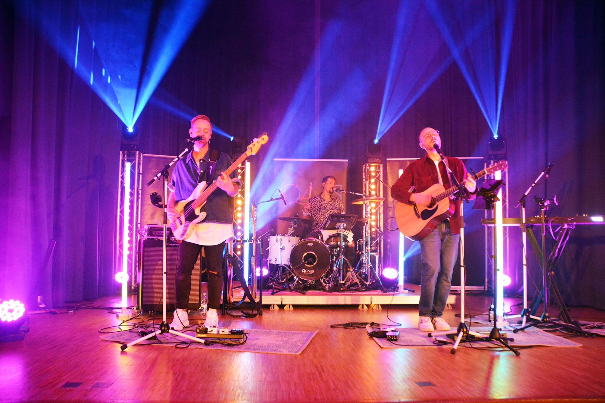 Vor zehn Jahren haben sich Simon Esslinger, Lukas Pferrer und Sven Schneider zunächst zur Band „Wohnzimmeracoustic“ zusammengefunden und sich 2017 den Namen „PAN“ gegeben. „Wir freuen uns ein bissle, heute unseren zehnten Geburtstag feiern zu können“, begrüßte Frontmann Simon Esslinger die Konzertbesucher und bestätigte: „Wir sind Seelenverwandte.“ Diese Harmonie strahlt das Trio auch mit ihrem Sound aus. Ihre Stimmen passen sehr harmonisch zueinander. Als virtuose Könner an Schlagzeug, Bass, Gitarre und Keyboard interpretiert die Coverband die bekannten Musikstücke sehr überzeugend und nahe am Originalsound.