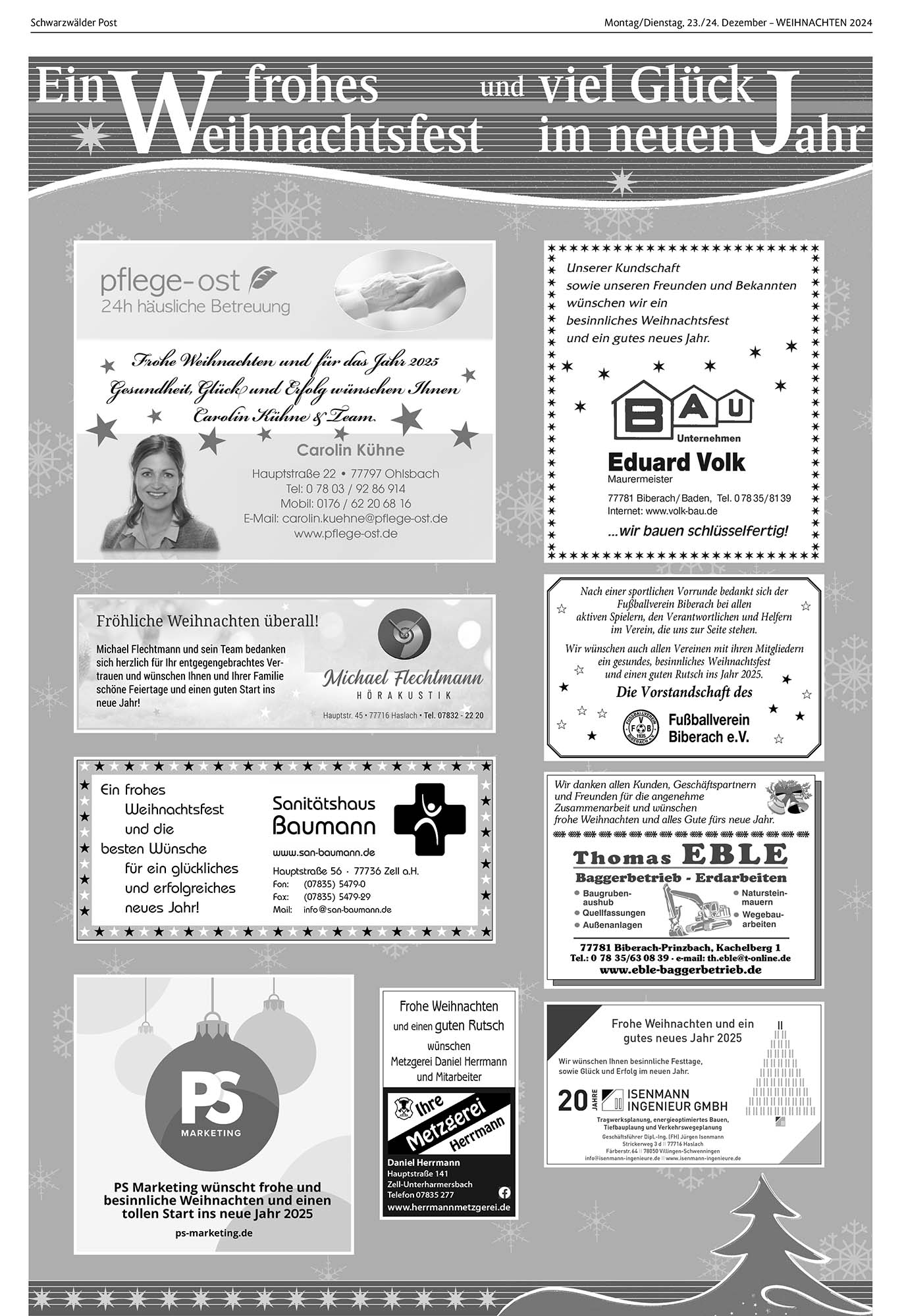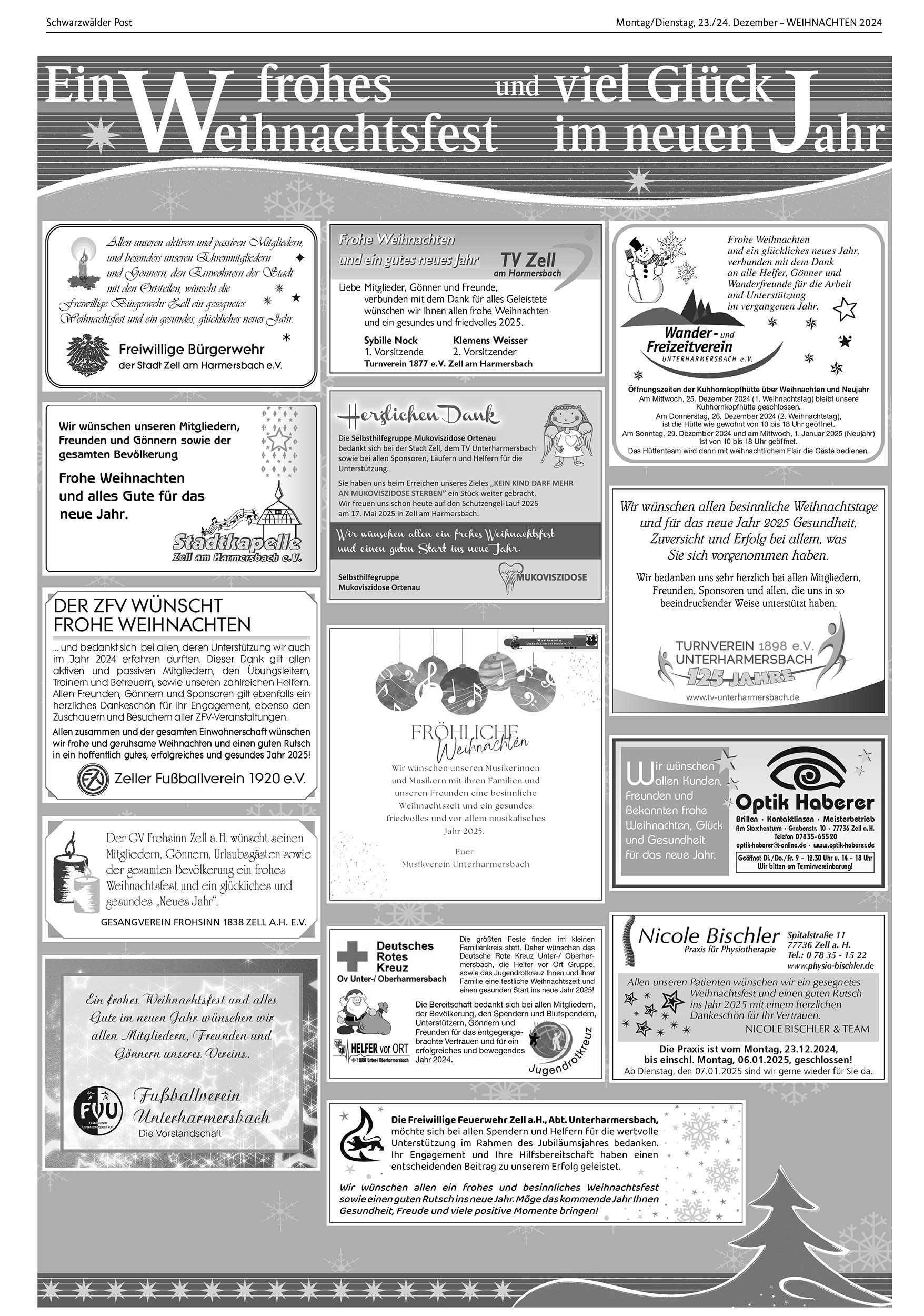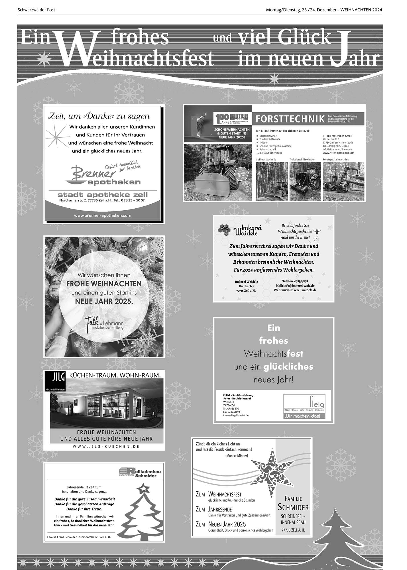 Anzeige, Zell am Harmersbach | 23.12.2024 Ein frohes Weihnachtsfest und viel Glück im neuen Jahr Foto: Foto: Unternehmen von Schwarzwälder Post Foto: Unternehmen Foto: Unternehmen Foto: Unternehmen Foto: UnternehmenDas könnte Sie auch interessieren:Foto: privatFinale bei den „Märchenhaften Weihnachtsfreuden“Foto: Archivfotos: Hanspeter SchwendemannMit dem Silvesteraufmarsch wird das alte…Foto: Melanie GutmannSchornsteinfeger bringen Glück