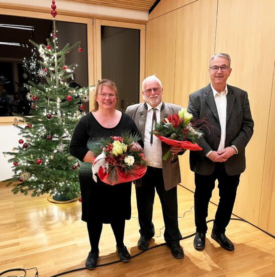 Mitten in der letzten Adventswoche fand im evangelischen Gemeindezentrum ein stimmungsvoller Abend mit Texten ausgesucht und vorgetragen von Klaus Huber (Mitte) vom Dachsbuckel statt. Sonja Große (links) überzeugte an der Orgel mit einfühlsam gespielten Weihnachtsliedern, die von den Besuchern mit gesummt werden durften. Warm und bequem saß man im Kerzenschein vom Adventskranz und dem bereits voll geschmückten Weihnachtsbaum. Ein Wohlfühlabend für Junge und Junggebliebene. Kirchengemeinderatsvorsitzender Joachim Groß (rechts) bedankte sich bei den beiden Akteuren.