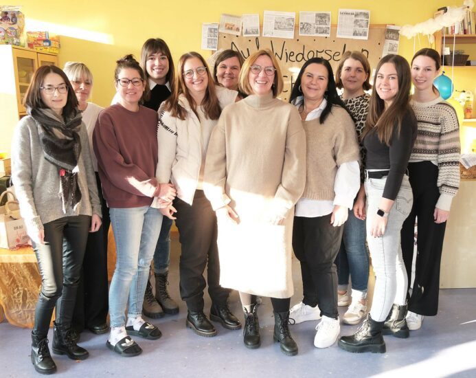 Im Kindergarten „Villa Regenbogen“ war der Name am Freitag Programm: Bunt und fröhlich wurde Michèle Körnle nach über drei Jahrzehnten herzlich verabschiedet.