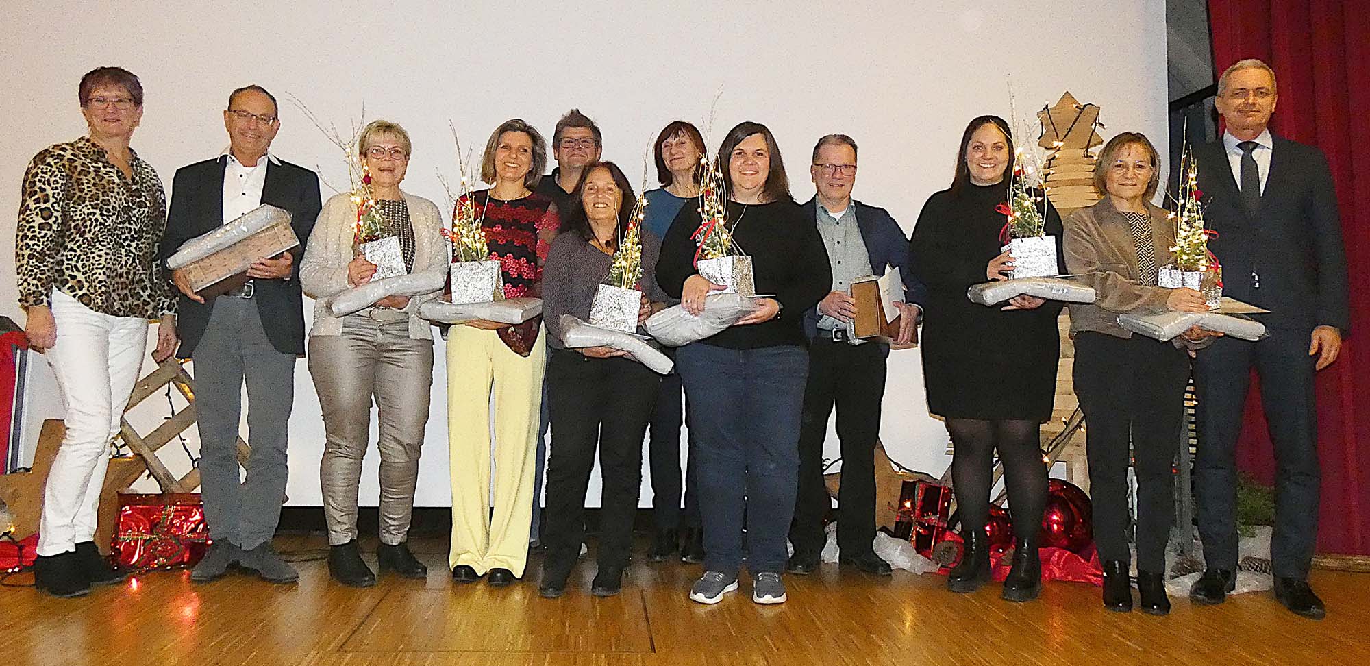 Foto: Inka Kleinke-Bialy„Das ist immer ein wunderschönes Zeichen – sowohl beim Jahresausflug als auch hier bei der Weihnachtsfeier“, drückte Bürgermeister Günter Pfundstein seine Freude über rund 140 Teilnehmer aus – diesmal im großen Saal des Unterentersbacher Dorfgemeinschaftshauses.