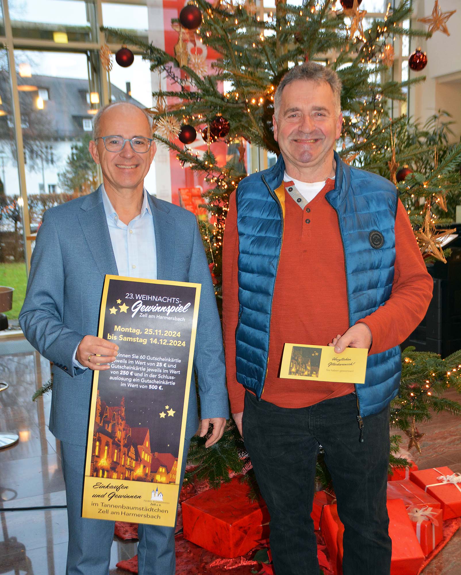 Manuela Willmann aus Schuttertal und Wendelin Willmann aus Nordrach sind die beiden finalen Hauptgewinner beim diesjährigen Weihnachtsgewinnspiel des Handels- und Gewerbevereins. Zumindest ihren Nachnamen haben die beiden gemeinsam und natürlich teilen sie sich auch die Freude über die schöne vorweihnachtliche Überraschung. Ob sie – zumindest weiter entfernt – auch verwandt sind, konnte so nicht festgestellt werden.