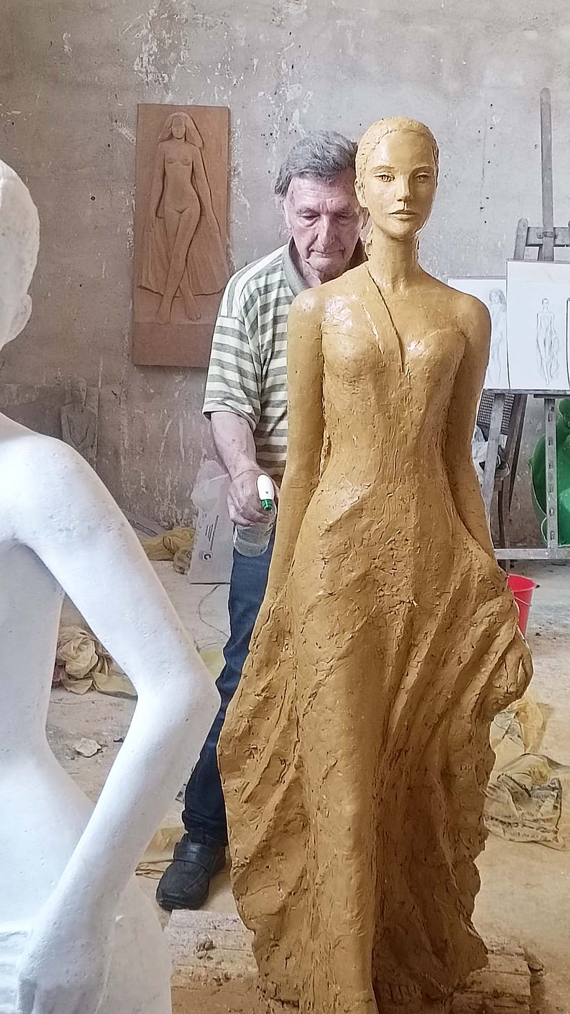 Ich erinnerte mich an meinen Besuch im Juni 2023 in seinem Atelier. Seine letzte Skulptur „Donna con Abito Lungo“ wurde gerade in Ton modelliert. Bis zur Fertigstellung in Bronze waren noch viele Bearbeitungsschritte notwendig. Wie muss man sich fühlen, wenn man als Bildhauer an seinem letzten Werk arbeitet? Ich dachte in diesem Moment an den Spruch des Zarathustra (7./6. Jh. v. Chr.): „In jedem Anfang liegt schon das Ende.“