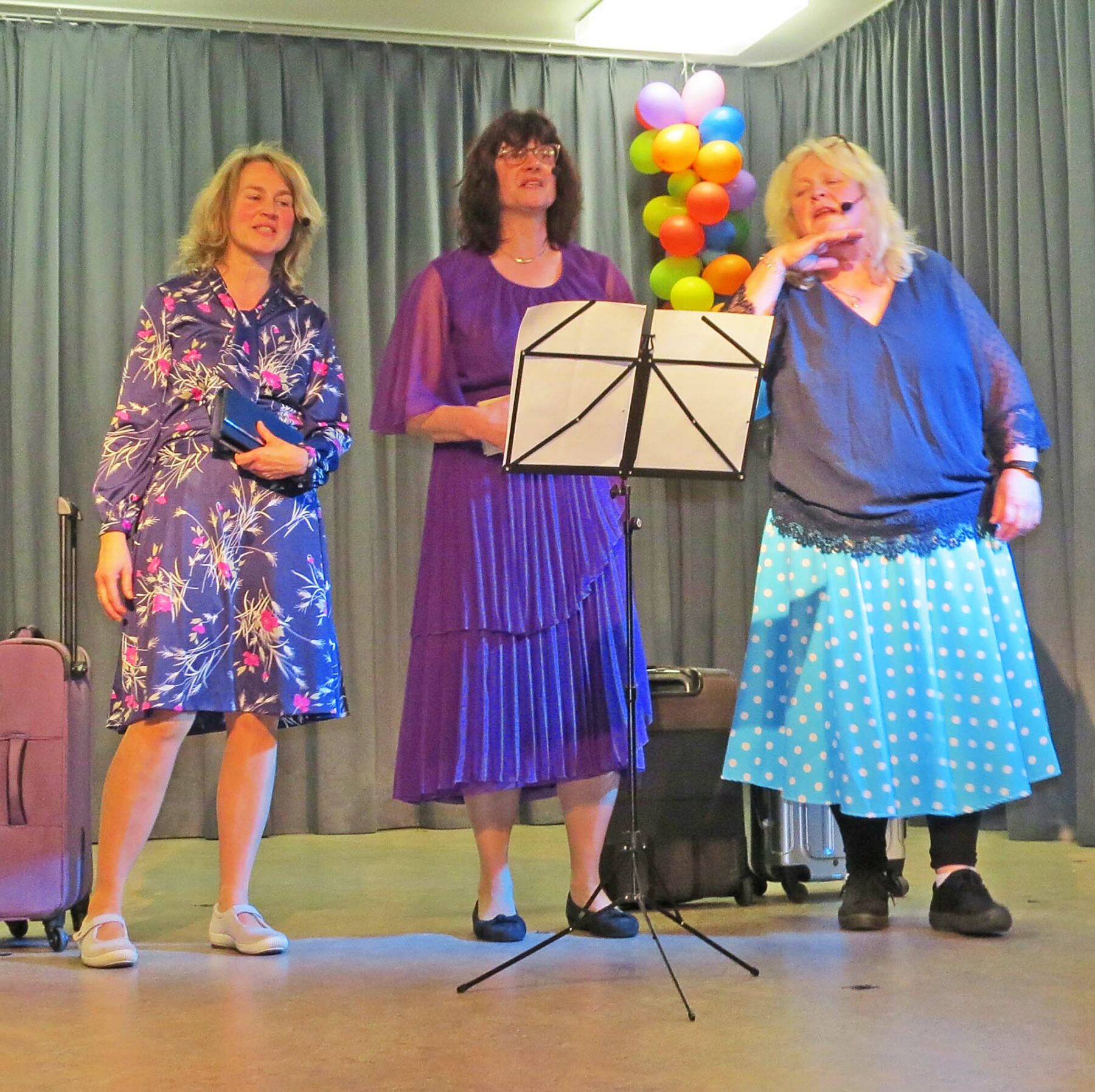 Und das Beste kommt am Schluss: Fünf Frauen wollen zur Kur – müssen was machen für die Figur. Sie stehen am Bahnhof und lamentieren, wie schlimm wohl alles werden wird in der Kur. Denn: Eine Kur ist der Plan, dass aus der Krähe wird ein Schwan. Abnehmen, gesund essen, Sport machen – ist eine Kur nicht etwas wie Tortur? Es gibt Streit – und dann: „Der Zug ist fort und wir nicht drin, denn Abnehmen macht einfach keinen Sinn.“ Sie sind glücklich mit ihrem Fett, und auch mit den Kilos richtig nett. Welch eine Resümee nach diesem Abend: Jede Frau ist richtig so, wie sie ist.