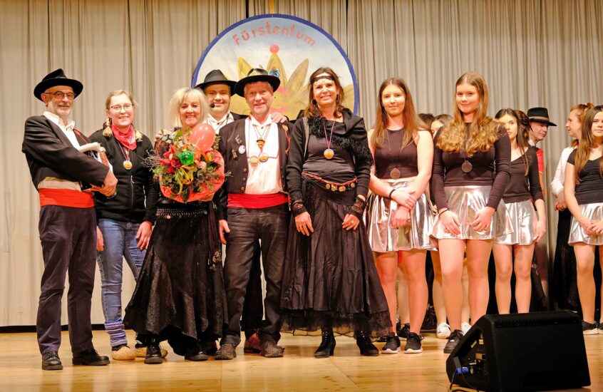 Jochen Ketterer fährt seit 25 Jahren den Wagen, Anna Hug und Katrin Feuer Coan verstärken die Lohgass seit 10 Jahren. Susi Dangl ist die bessere Fasendshälfte von Fürst Alex (Gemeinschaftsführer), der sich dafür mit einem Blumenstrauß bedankte. Wolfgang Behnke wirbelt seit 30 Jahre aktiv mit, davon zwölf Jahre in der Vorstandschaft und zehn Jahre als Festwart. Annika Effinger und Mina Kniesel sind neu dabei und bekamen den Kinderorden.