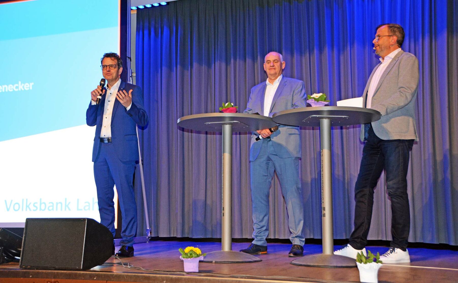 „Timothy Trust und Diamond“ wurden bereits als „Magier des Jahres“ in Deutschland ausgezeichnet. Bei der Mitgliederversammlung am Mittwoch stellten sie ihre Klasse unter Beweis und sorgten für magische Momente und erstaunte Gesichter. Gleich zum Auftakt ließ der Magier seine charmante Partnerin in einer Zauberkiste verschwinden, schob Fächer und Leuchtstäbe hindurch, ehe sie dann wieder unversehrt die Bühne betrat. Auch als Bauchredner mit Frosch Georg oder als Gedankenleser sorgten sie für beste Unterhaltung und verblüffende Kunststücke.Informationen aus erster Hand: In zwei Gesprächsrunden mit Moderator Markus Knoll, Geschäftsführer von Hitradio Ohr (jeweils rechts), gaben beiden Vorstände Peter Rottenecker und Reiner Richter (von links) sowie Niclas Wussler und Rainer Griesbaum (rechts Bild, von links) zahlreiche Informationen zur Entwicklung der Volksbank Lahr sowie über verschiedene Bankprodukte.Informationen aus erster Hand: In zwei Gesprächsrunden mit Moderator Markus Knoll, Geschäftsführer von Hitradio Ohr (jeweils rechts), gaben beiden Vorstände Peter Rottenecker und Reiner Richter (von links) sowie Niclas Wussler und Rainer Griesbaum (rechts Bild, von links) zahlreiche Informationen zur Entwicklung der Volksbank Lahr sowie über verschiedene Bankprodukte.Rund 400 Mitglieder nahmen am Mittwochabend an der Mitgliederversammlung der Volksbank teil. Allen voran (von links) Vorstandsvorsitzender Peter Rottenecker und Ortsvorsteher und Bürgermeister-Stellvertreter Jürgen Isenmann sowie (von rechts) Vorstand Reiner Richter, Bürgermeister Jonas Breig und Aufsichtsratsmitglied a. D. Karl Lehmann.