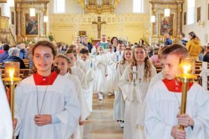 Bereits seit Oktober 2024 hatten sich die Mädchen und Jungen auf diesen großen Moment vorbereitet. Unter dem diesjährigen Motto „Wie ein Fisch im Wasser, so leben wir in Gott“ erlebten sie in fünf samstäglichen Gruppentreffen, beim Versöhnungsnachmittag, in gemeinsamen Gottesdiensten und weiteren, von Eltern organisierten Zusammenkünften den Glauben auf vielfältige Weise. Sie hörten Geschichten von Jesus, lernten sein Wirken kennen und erfuhren, wie der Glaube das Leben trägt und bereichert.