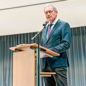 Bürgermeister Günter Pfundstein begrüßte die Gäste herzlich. In seiner Ansprache würdigte er die Lebensleistung der Seniorinnen und Senioren und betonte die Bedeutung des Miteinanders in Zeiten des Wandels. Er sprach aktuelle Herausforderungen wie den technologischen Fortschritt durch Künstliche Intelligenz und Robotik sowie den Krieg in Europa an. Trotz dieser Entwicklungen seien Werte und menschliche Nähe unersetzlich. „Menschen sind ultrasoziale Wesen, was eine KI hoffentlich nie so genau simulieren kann“, so Pfundstein. Der Seniorennachmittag solle Gelegenheit bieten, alte Bekannte zu treffen, Erinnerungen auszutauschen und gemeinsam zu feiern.